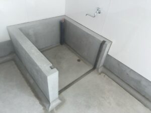 ここに、水を貯めて材料を冷やしたいという要望でしたのでFRP防水で仕上げました😊